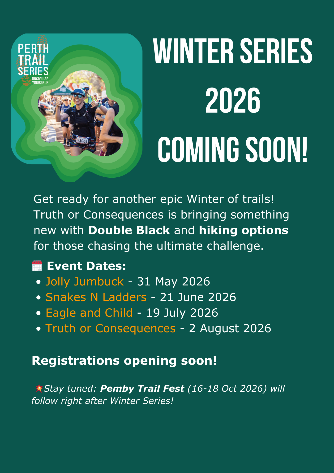 By providing your phone number, you agree to receive promotional and marketing messages, notifications, and customer service communications fro Perth Trail Series. Message frequency varies. Text STOP to cancel.